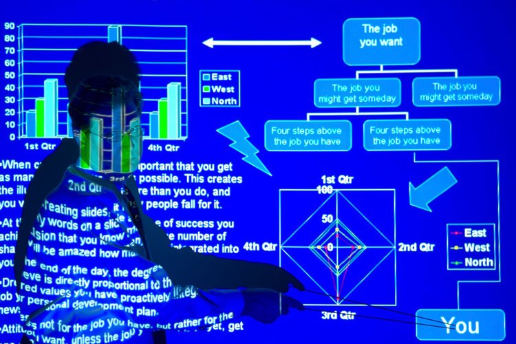 Y después… ¡CHOF! A la cuarta diapositiva la magia se había evaporado. Las dos pantallas estaban abarrotadas de datos, gráficos, tablas y viñetas. Los contenidos eran ilegibles e indistinguibles, incluso para los que ocupaban las primeras filas. Aunque los paseos del galán, de un lado a otro del escenario, resultaban estéticamente cautivadores, no se entendía nada de lo que decía. Jerga y tecnicismos a tutiplén, conceptos complejos que se daban por sabidos, conclusiones que parecían salidas de la nada… El desencanto en la sala era palpable, y la gente se empezó a remover en sus asientos.